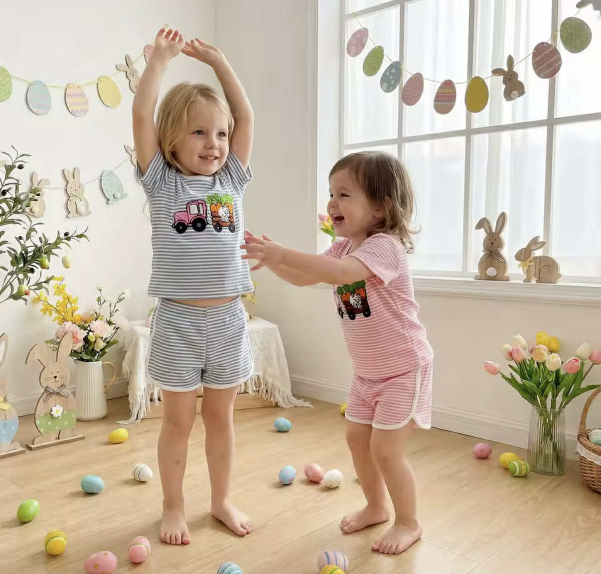 Hop into spring with our adorable Carrot Patch Cuties Short Set! This playful two-piece features charming carrot-themed designs that'll make your little one the sweetest bunny in the patch. Crafted from soft, breathable fabric, it's designed for all-day comfort whether you're celebrating Easter or just spreading garden-fresh cuteness. Perfect for photos, playdates, or holiday festivities.
