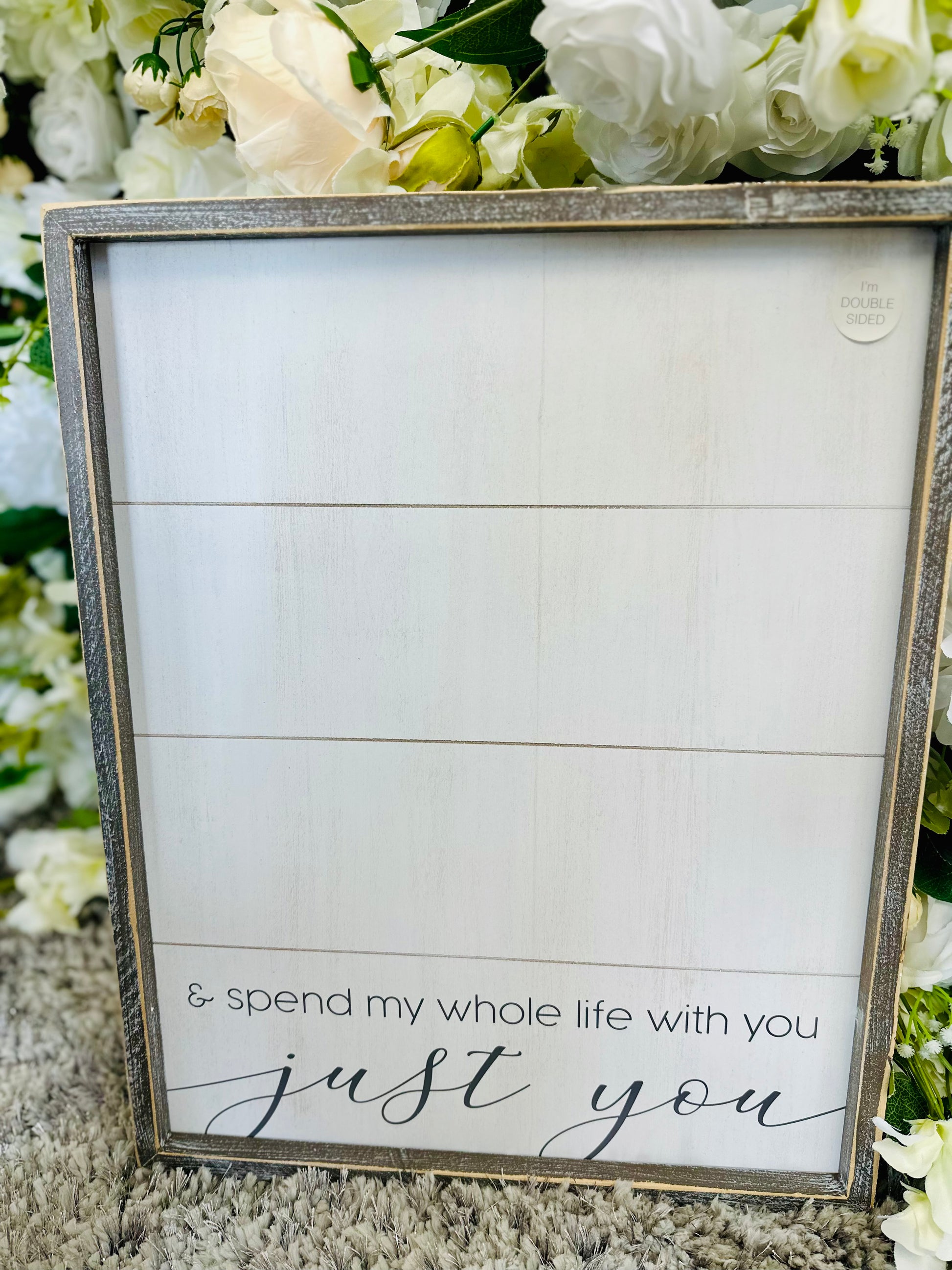 This reversible wood framed shiplap uses a pretty combination of white and grey colors and displays, "Celebrate Today Because... Everyday Is A Gift" on one side and "& Spend My Whole Life With You, Just You" which makes it a good medium of expressing your love to your loved ones. It would look great along with your other home decors.