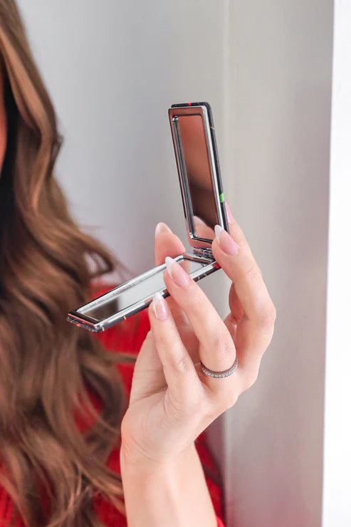 Add a sprinkle of holiday cheer to your handbag with the Christmas Lights Compact Mirror. This festive companion lights up your look while letting you check and perfect your holiday glow on the go. Small, bright, and merry—it's the perfect pocket-sized burst of Christmas magic wherever you are!