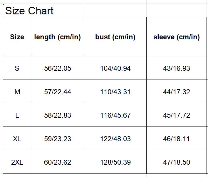 Sizes: S, M, L, XL, 2XL