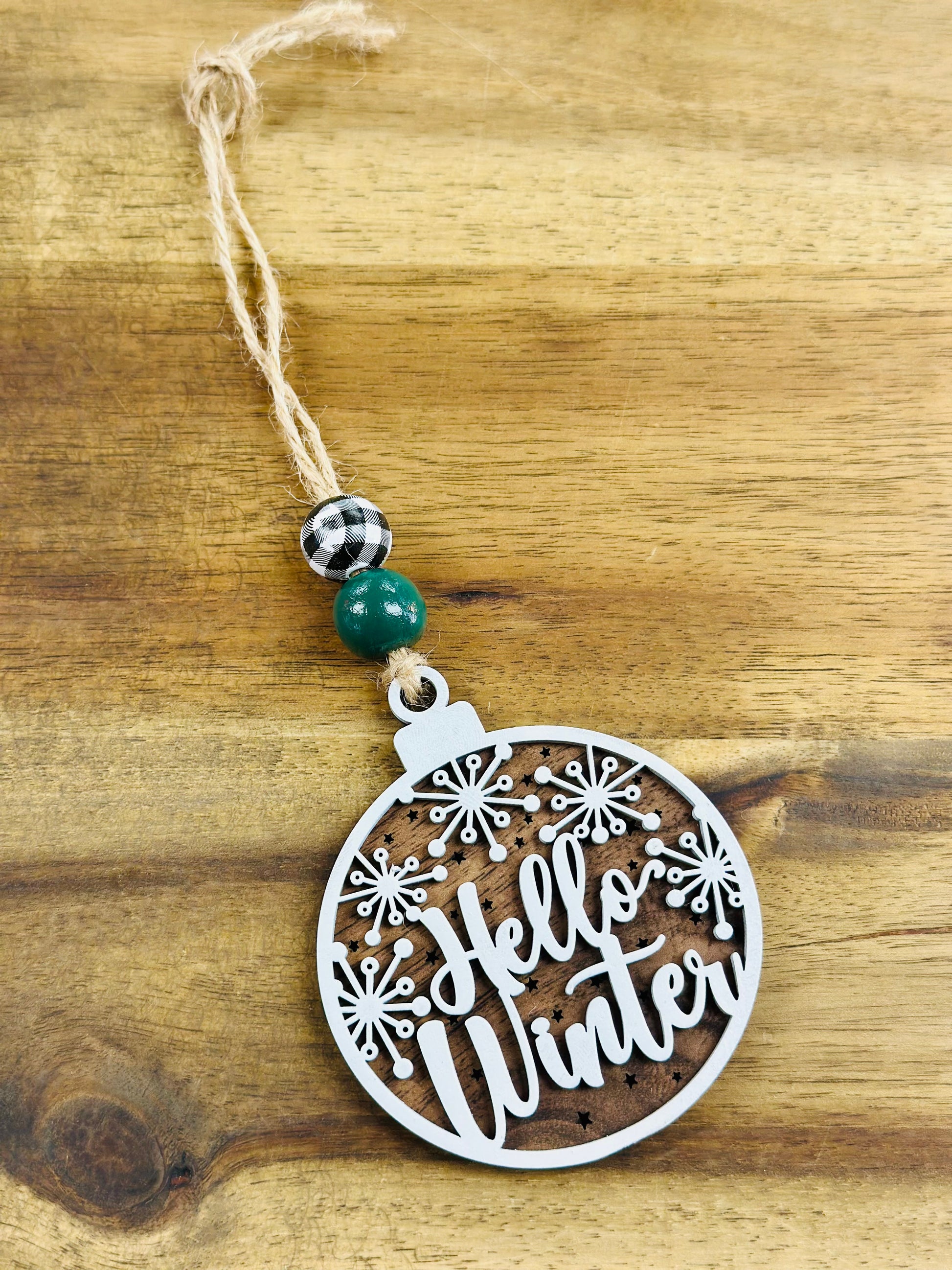Add a touch of rustic charm to your holiday décor with our Hello Winter wooden ornament. Crafted with a layered wood design, this piece features a warm natural wood background framed by a crisp white snowflake cutout and festive script lettering. Finished with a jute hanger accented by green and white wooden beads, it’s perfect for your Christmas tree, gift wrapping, or seasonal displays.