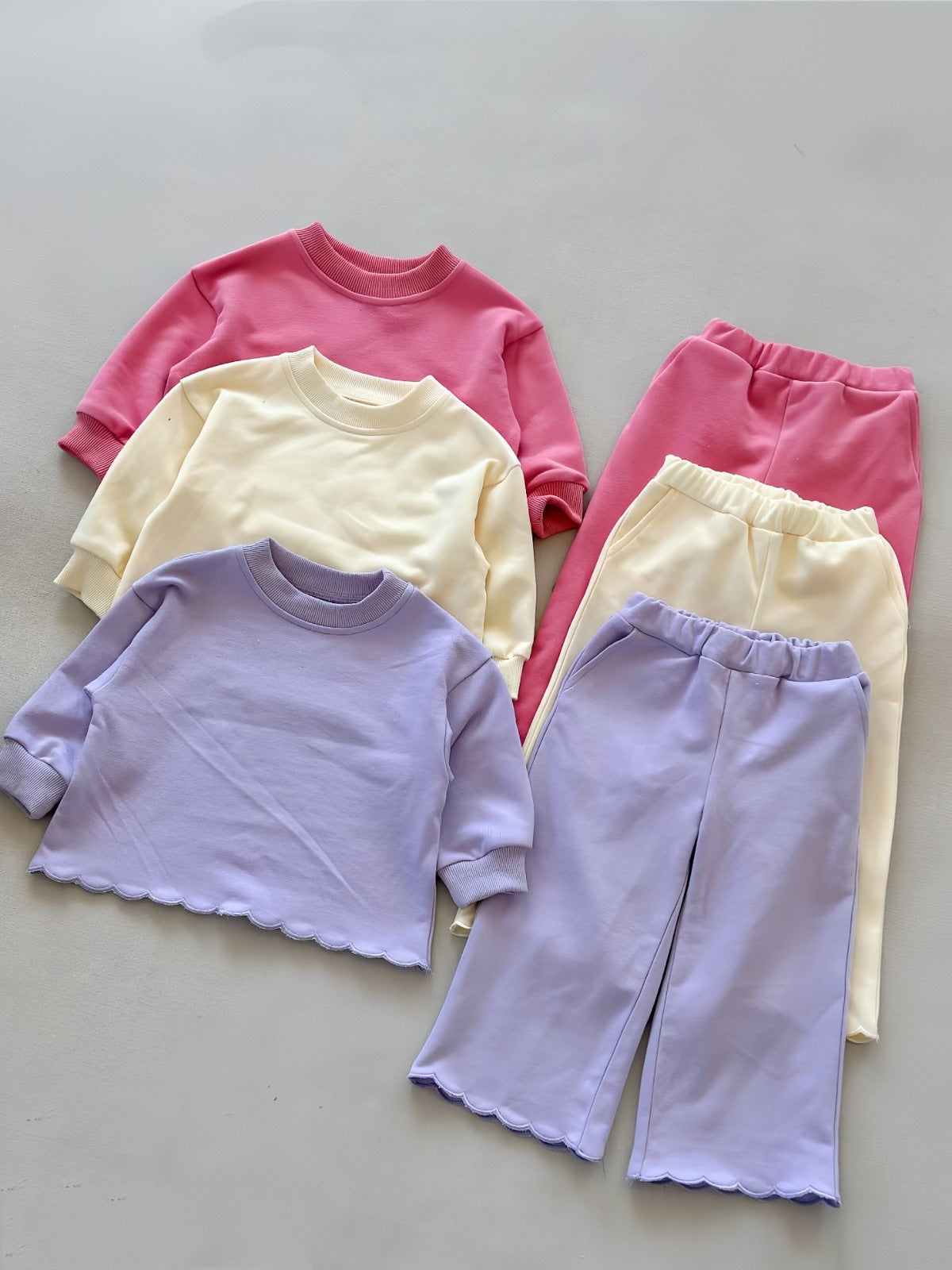 Transform playtime into style time with our Kids Scalloped Set! Available in cheerful colors, there's a shade for every mood and personality. Crafted from soft, breathable cotton, this set keeps comfort at the top of the priority list while looking absolutely adorable. The signature scalloped trim adds that extra touch of charm kids genuinely love. Built with superior quality that survives countless adventures, spins in the washer, and everything in between. Let your little one pick their favorite color and watch them strut around with confidence!