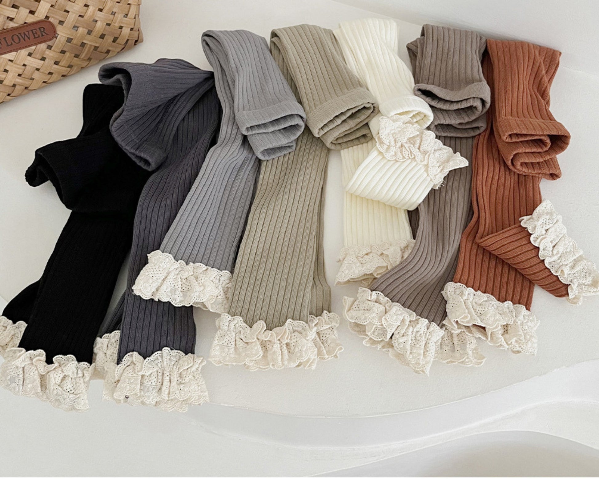 These playful leggings feature delicate lace trim at the bottom, adding a touch of charm to any outfit. Available in eight colors and five sizes, they’re perfect for girls who love comfort and style. Soft, high-quality fabric ensures a comfy fit for all-day fun. Sure to brighten up her wardrobe with these cute, lace-adorned tights!
