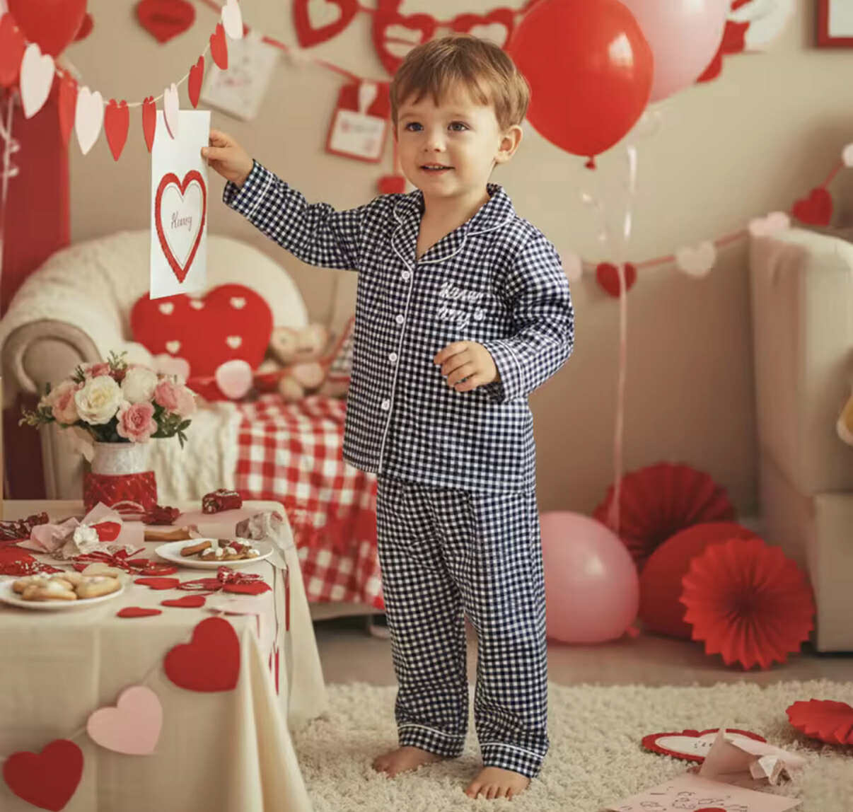 Snuggle up in style with these adorable silky pajamas featuring an embroidered "Lover boy" design on the side and a sweet little heart accent. The soft, smooth fabric feels amazing against skin, while the fun checkered pattern adds personality to bedtime. Available in three colors and five sizes to fit your little one perfectly. Cozy comfort meets playful charm—the ultimate sleepwear upgrade!