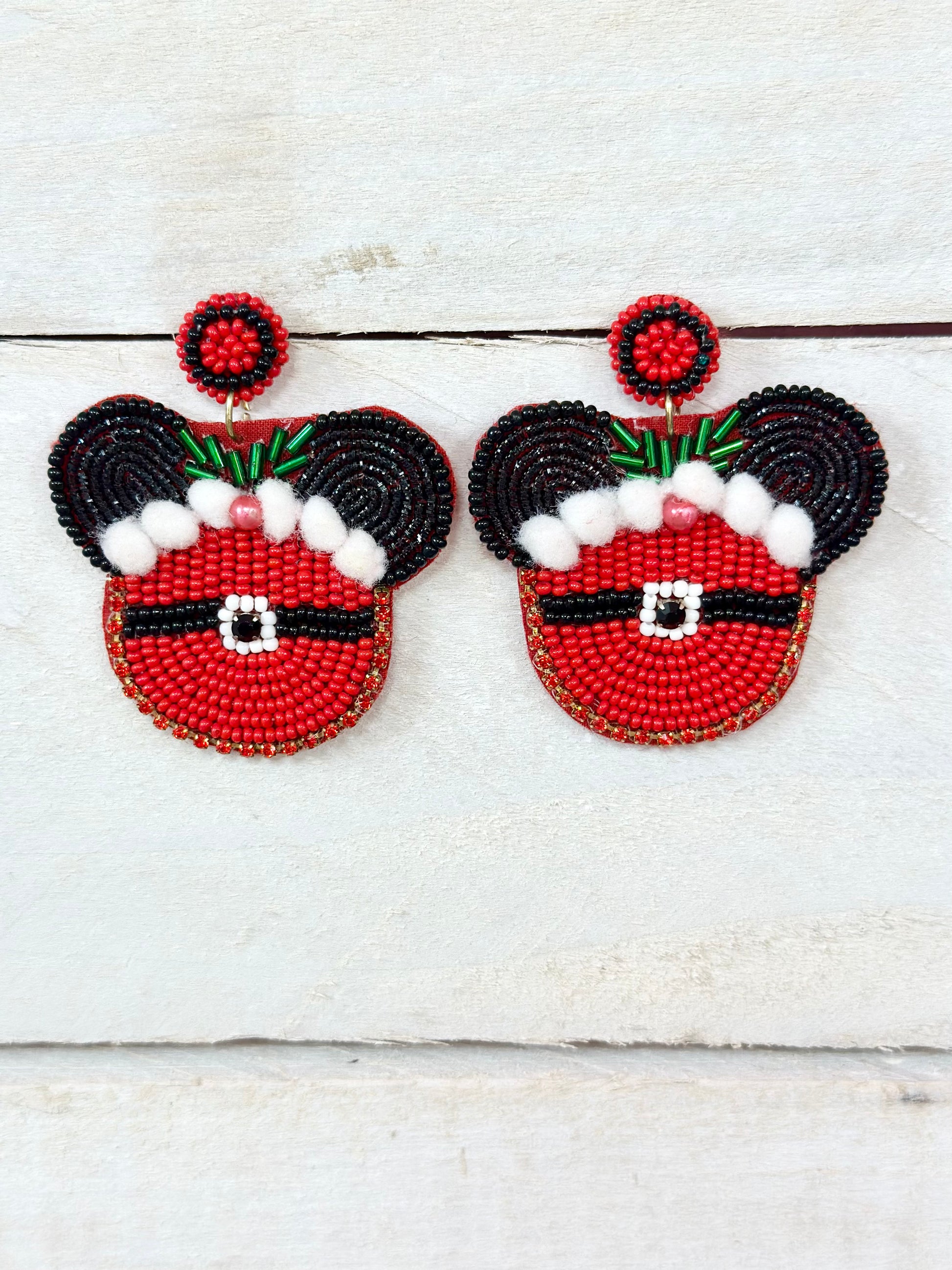 seed bead Minnie Christmas drop earrings, hand sewn on felt back