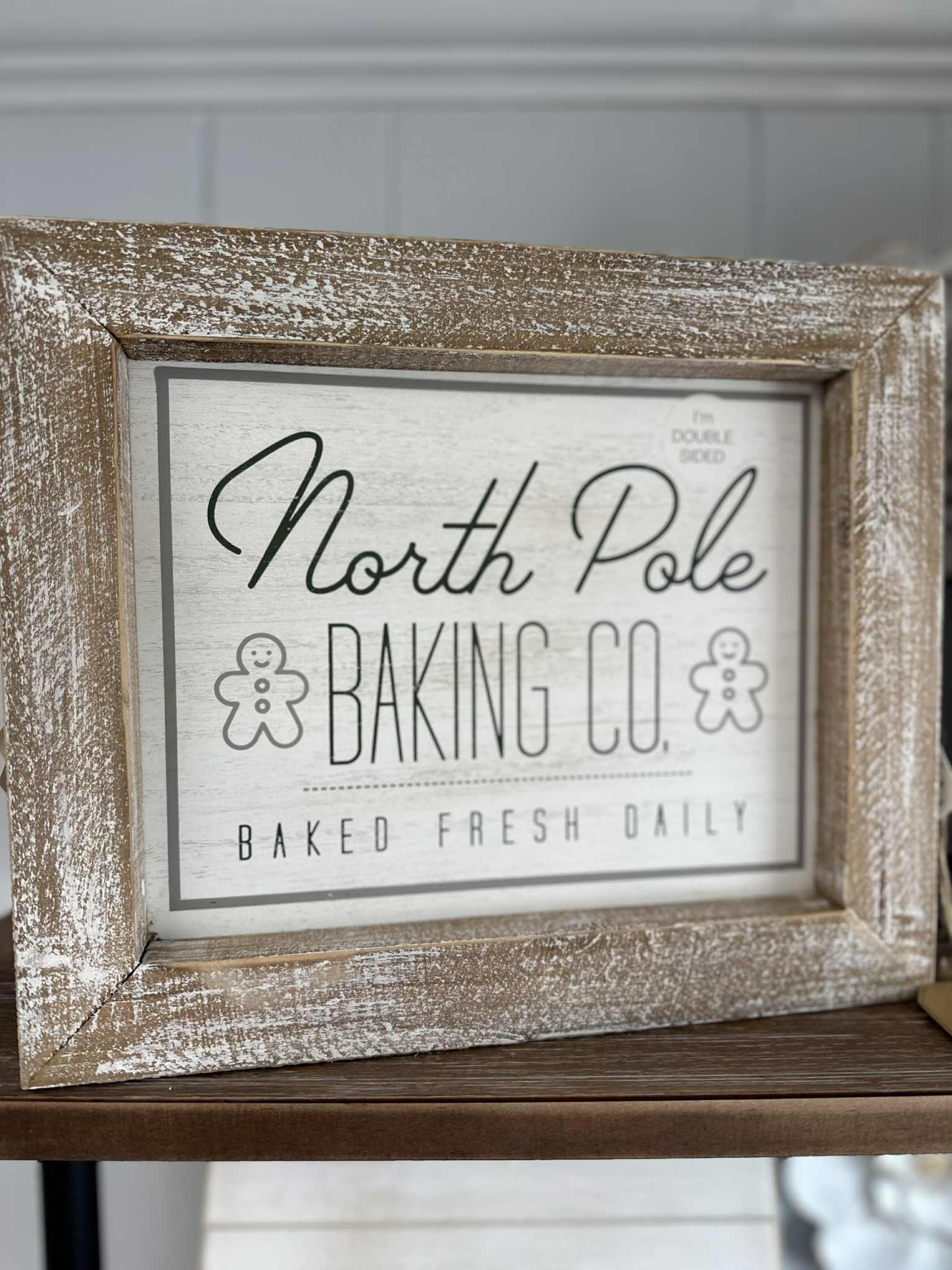 12x10x2 reversible wood framed sign (NORTH POLE BAKING CO / MAMA'S HOMEMADE BAKED GOODS) Perfect table top sign for Christmas, then flip it around for every day use as well. Thick chunky wood frame.