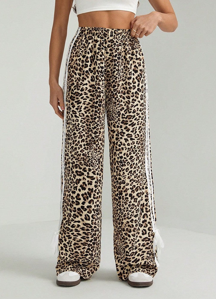 Meet your new go-to track pant that's equal parts cozy and chic. These striped beauties feature an adorable bow detail that takes your athleisure game to the next level. Choose between bold leopard print or classic black—both are equally obsession-worthy. Perfect for lounging, running errands, or making a statement wherever you go. Comfort and style finally agree on something.