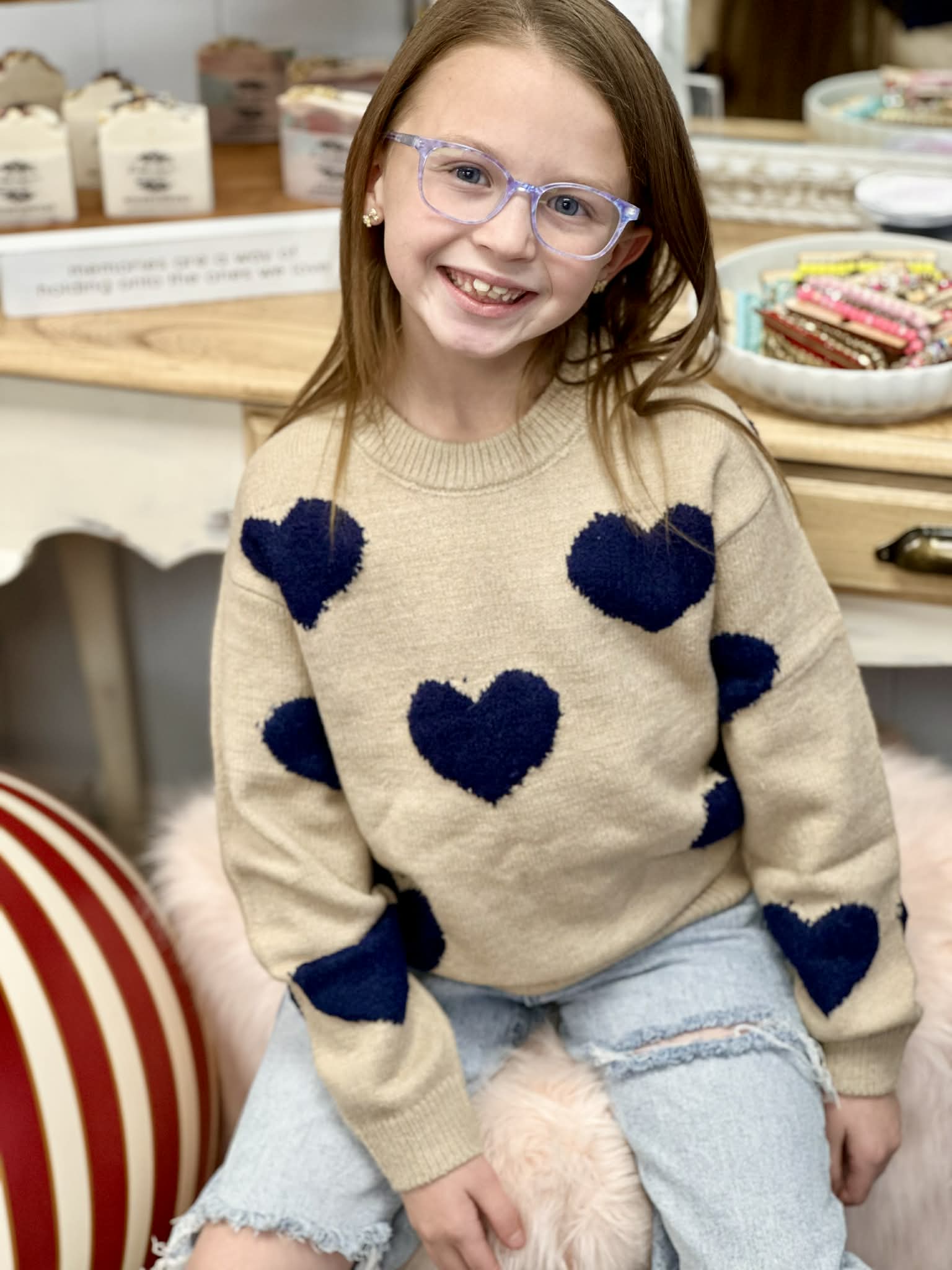 Stay cozy and stylish with this Girls' Crew Neck Sweater, designed for ultimate comfort and warmth. Featuring a soft knit blend with a touch of wool for extra coziness, this sweater is perfect for chilly days. The adorable heart pattern adds a fun, playful touch, making it a must-have for any girl's wardrobe. With a relaxed fit and classic crew neck, it's ideal for layering over t-shirts or pairing with jeans and leggings for a cute, casual look.